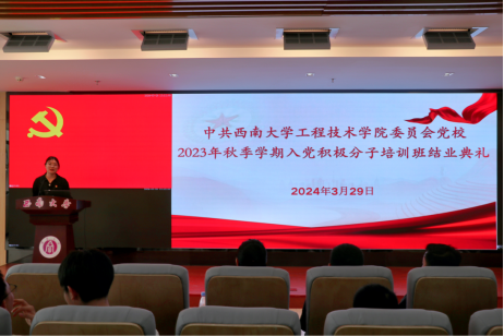3月29日中午,中共西南大学工程技术学院委员会党校2023年秋季学期入党积极分子培训班结业典礼在工科大楼A座511会议室举行。学院党委副书记、纪委书记、党校副校长陈富国,学院专职组织员于伊娜,2023级辅导员吴祥均及培训班全体学员参加本次典礼。典礼由党校班主任邓兰香主持。