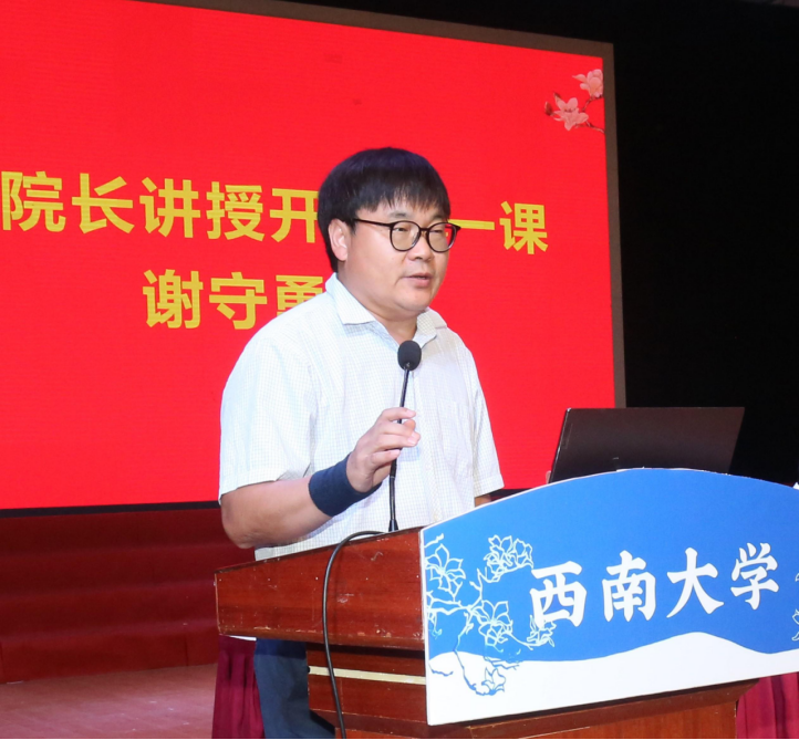 最后,谢守勇院长为给全体新生带来了入学教育第一课。他向同学们介绍了学院深厚的办学历史底蕴、良好的人文环境和近年来取得的优异成绩。他指出,新生同学的加入,为学院发展注入了青春的活力和不竭的动力。希望全体新同学坚定理想,敢于担当,敢于创新,与时代共进,与祖国同行,做新时代的青年追梦人!