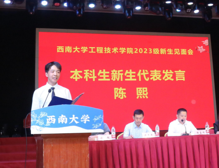 2023级机械设计制造及其自动化专业本科生陈熙作为本科新生代表发言,他表示面对挑战和压力,作为新生要树立正确的学习态度、主动融入学院文化、注重综合发展和成长,放飞青春梦想,书写人生华章。