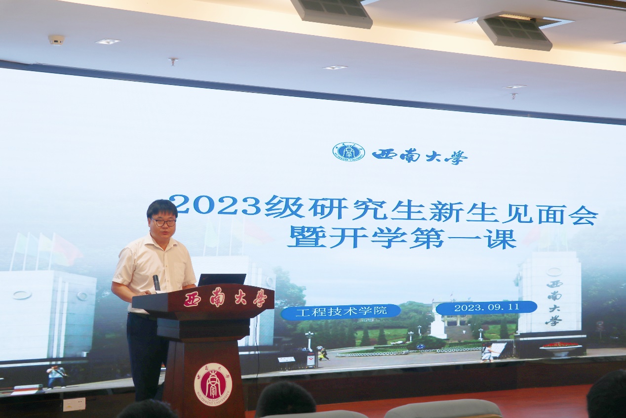 9月11日上午,学院在新工科大楼附属5楼会议室举行2023级研究生新生见面。工程技术学院院长谢守勇,党委副书记、纪委书记陈富国,研究生教学秘书李渊明以及2023级全体研究生出席会议。本会议旨在引导新生坚定理想信念、厚植爱国情怀、练就过硬本领、锤炼优良品格,帮助研究生新生明确学习目标、掌握学习方法、尽快适应研究生生活。会议由研究生辅导员彭敏杰主持。