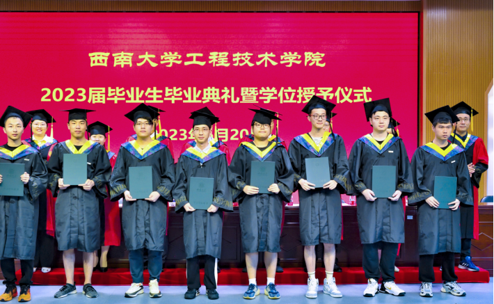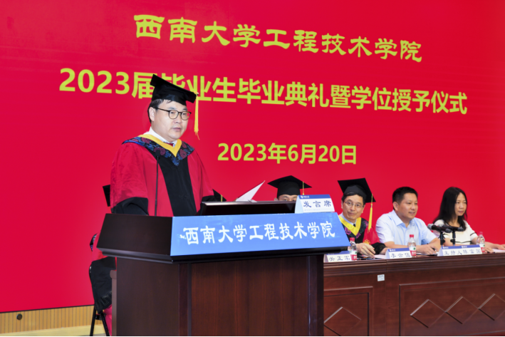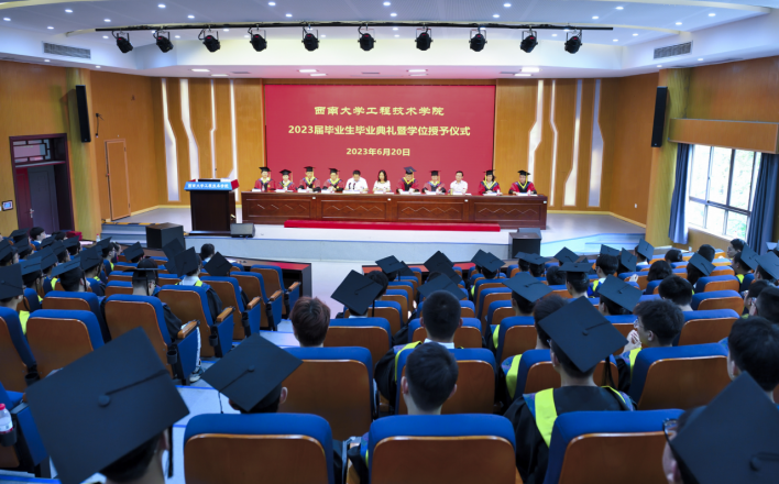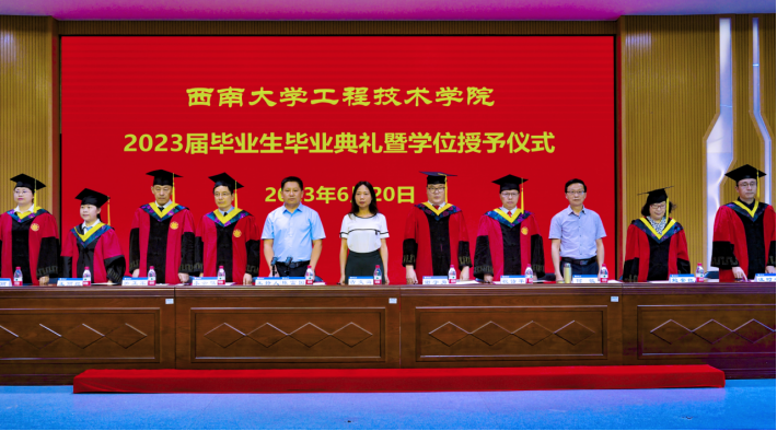 西南大学工程技术学院2023届毕业生毕业典礼暨学位授予仪式在全场师生齐唱《西南大学校歌》中圆满结束。
