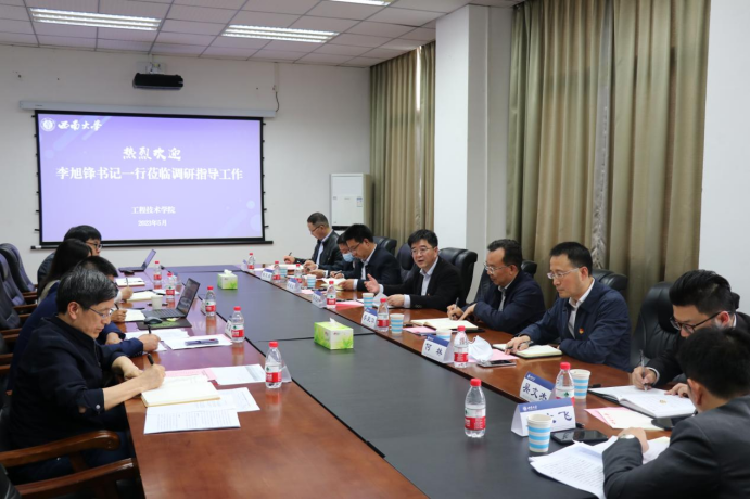 会上,学院党委书记古文海向李旭锋书记一行介绍了学院的基本情况,汇报了学院在推动党建与事业深度融合发展过程中的主要做法、特色亮点、存在问题、改进措施以及学院创建新时代“红岩先锋”变革型组织的工作思路,学院院长谢守勇就学院“3方向1研所”的研究方向建设及丘陵山区小型农机研发情况等正在推进的重点工作进行了汇报。调研过程中,李旭锋书记针对学院党组织建设、学科建设、人才培养、服务成渝双城经济圈等方面工作详细了解情况,进行充分调研,现场交流互动热烈。