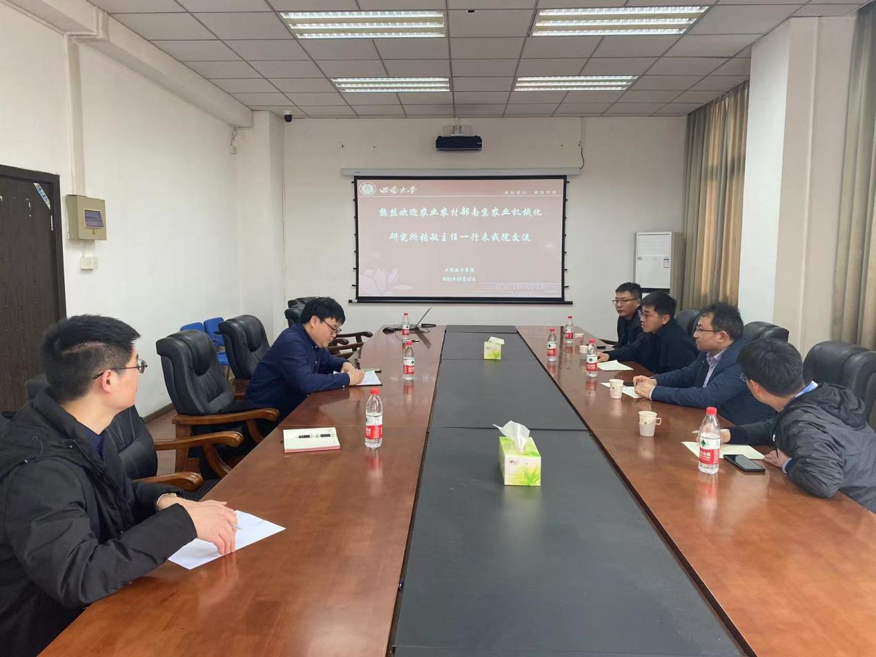 2023年3月8日,农业农村部南京农业机械化研究所张敏研究员率领穗粒作物生产技术装备创新团队来学院进行访问交流。会议由谢守勇院长主持,祝诗平副院长以及学院相关教师代表参加。