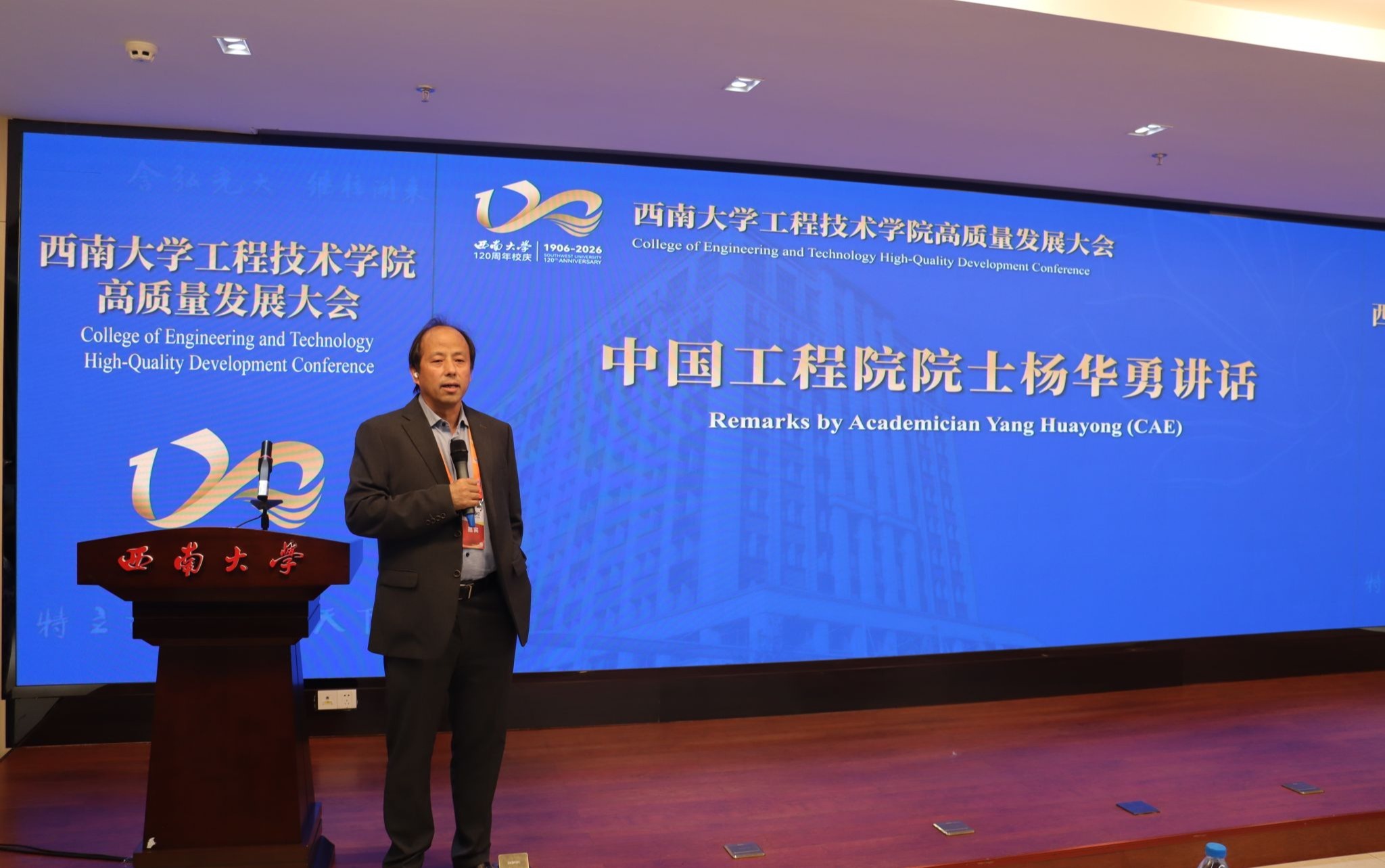 百廿荣光赓续,工程薪火相传。4月18日,工程技术学院高质量发展暨校友会成立大会隆重举行。中国工程院杨华勇院士、赵春江院士,国际山地综合开发中心(ICIMOD)总干事Pema Gyamtsho,学校相关职能部门负责人,学院历任及现任党政领导、校友代表、离退休教师代表、全体在职教职工和在校学生代表等齐聚一堂,共叙同窗情谊,共话学院发展蓝图,共庆学校百廿华诞。大会由学院党委副书记陈富国主持。