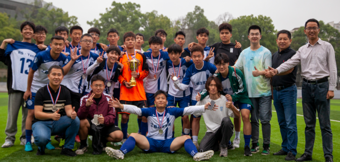 为加强我校足球运动的开展和交流,深化体教融合发展,推动和促进校园足球文化建设,学校体委于2023年5月12日至6月9日在全校本科生和研究生中开展了以“体育强国,奋斗有我”为主题的第九届校园足球联赛。比赛采取以学院组队,分组赛和交叉淘汰赛相结合的方式进行,我院学生男子足球队作为本次比赛的种子队参与角逐,经过激烈拼杀,最终捧得亚军。