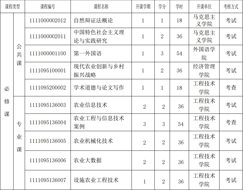 全日制农业硕士专业学位研究生培养方案(农业工程与信息技术领域)